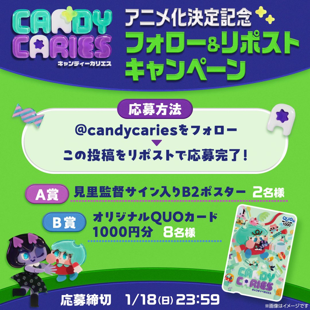 Don’t miss your chance to win exclusive merchandise from the upcoming anime ‘Candy Caries’! With a signed B2 poster from director Asaki Misato and original QUO cards up for grabs, this is a giveaway you don’t want to miss. Follow @candycaries and repost the original post to enter. Mark your calendars for April 2026 when the anime premieres!